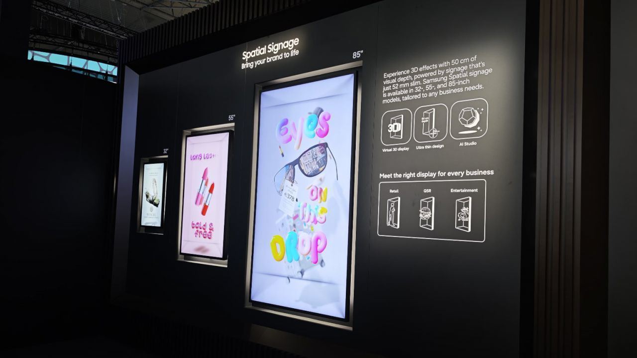 Samsung Spatial Signage se presenta como una solución de señalización digital 3D que no requiere dispositivos adicionales como gafas, un aspecto clave para su adopción en espacios abiertos al público. La tecnología patentada 3D Plate de la compañía genera una sensación de profundidad espacial situada detrás del panel LCD, manteniendo la nitidez del contenido 2D y añadiendo un efecto tridimensional de aspecto natural.
