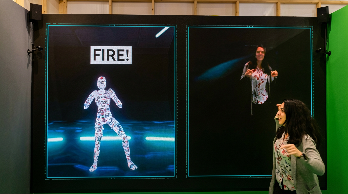 El primer impacto visual del stand lo protagonizaba ‘Godzilla’, una instalación pensada tanto para asombrar a los visitantes como para explicar en qué punto está la tecnología. A través de cámaras, Fujitsu capta el movimiento humano, aplica una capa de analítica de IA y conectividad y genera una representación digital del usuario convertido en un Godzilla verde sobre un fondo croma. “Es la forma más gráfica de mostrar cómo la IA deja de estar encerrada en un servidor y se ejecuta en la red y en el edge”, apunta García.