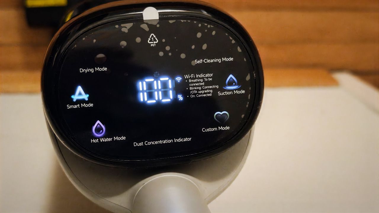 La pantalla ofrece información clara y directa sobre el modo de limpieza, el estado de la batería o la conexión WiFi, todo de forma visual e intuitiva