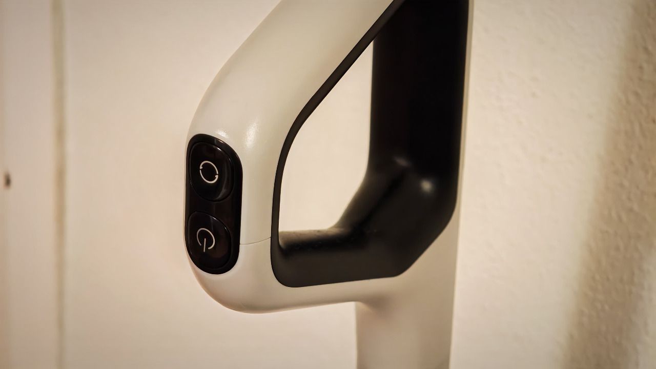 El diseño combina materiales sólidos con acabados elegantes. La pantalla ofrece información clara y directa sobre el modo de limpieza, el estado de la batería o la conexión WiFi, todo de forma visual e intuitiva. También se agradece que la máquina pueda mantenerse en posición vertical cuando haces una pausa, sin necesidad de apoyarla.
