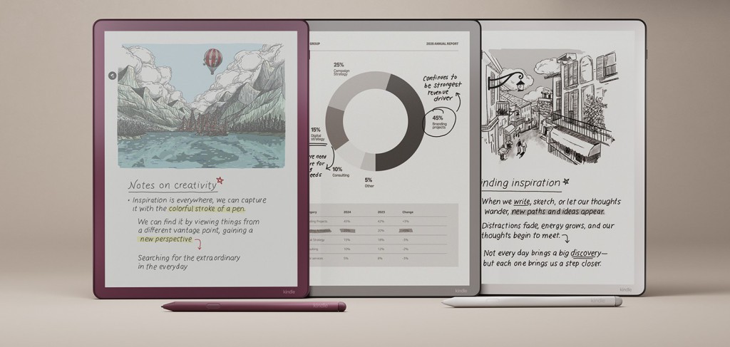 En el apartado de lectura digital, Amazon ha desvelado tres nuevos modelos de Kindle Scribe, entre ellos el Kindle Scribe Colorsoft, el primero con pantalla en color, que parte de los 629,99 dólares. Los modelos básicos y de gama media se situarán en 429,99 y 499,99 dólares, todos con pantalla de 11 pulgadas, biseles más delgados y funciones de IA para resumir notas.