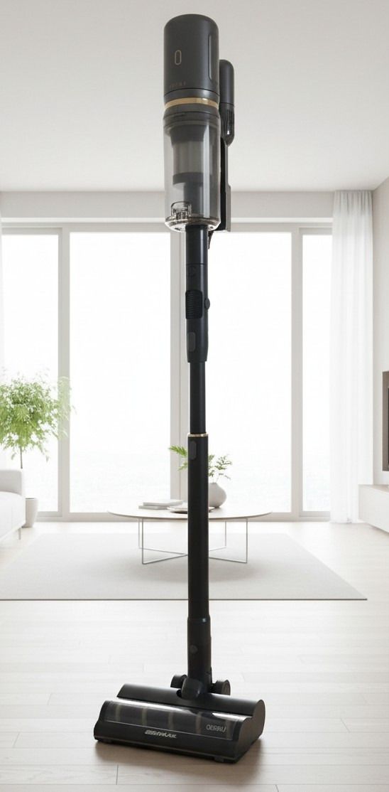 Uno de los detalles más llamativos lo aporta el tubo articulado; ya que al pulsar el punto de flexión, el cuerpo se inclina y nos permite entrar bajo muebles bajos sin que el cabezal pierda contacto con el suelo. Esta mecánica también reduce los golpes accidentales contra patas de sillas o esquinas. Es decir, limpiar bajo la cama o los sillones ya no es tan engorroso.