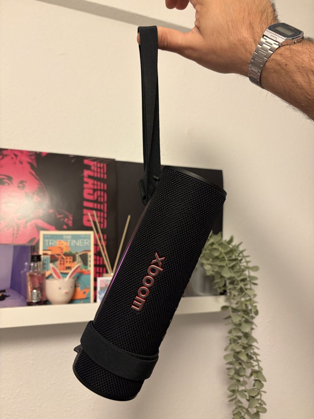 • Terraza / exteriores: También pude llevármelo para disfrutar de él al aire libre y la sensación fue de 10. La correa me permitió colgarlo de una mochila y moverse sin problemas. Las luces aportaban un toque “mini fiesta chill”: nada invasivo, pero sí ambiente.